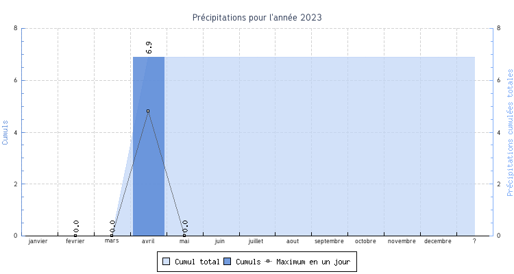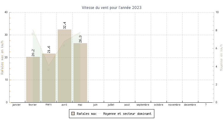 | avril | 5.6 °C | 6.5 °C | 13.0 °C | 10.3 °C | 8.3 °C | 6.8 km/h | 32.4 km/h | 0 |