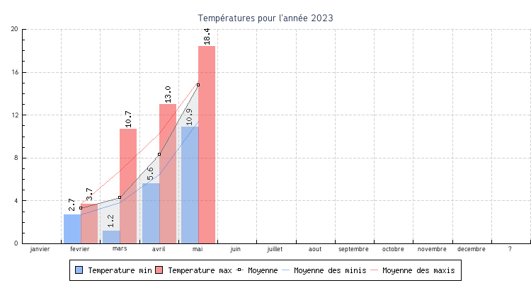 | fevrier | 2.7 °C | 2.7 °C | 3.7 °C | 3.7 °C | 3.3 °C | 8.1 km/h | 20.2 km/h | 0 |